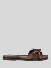Square-toe slides in iconic Paisley fabric with crossover design. Both the buckle on the upper and the insole are embellished with the ETRO logo. • Made in Italy PRODUCT DETAILS • Upper: 76% cotton, 24% polyester • Buckle: 100% brass • Insole: 100% goatskin • Sole: 100% cowhide