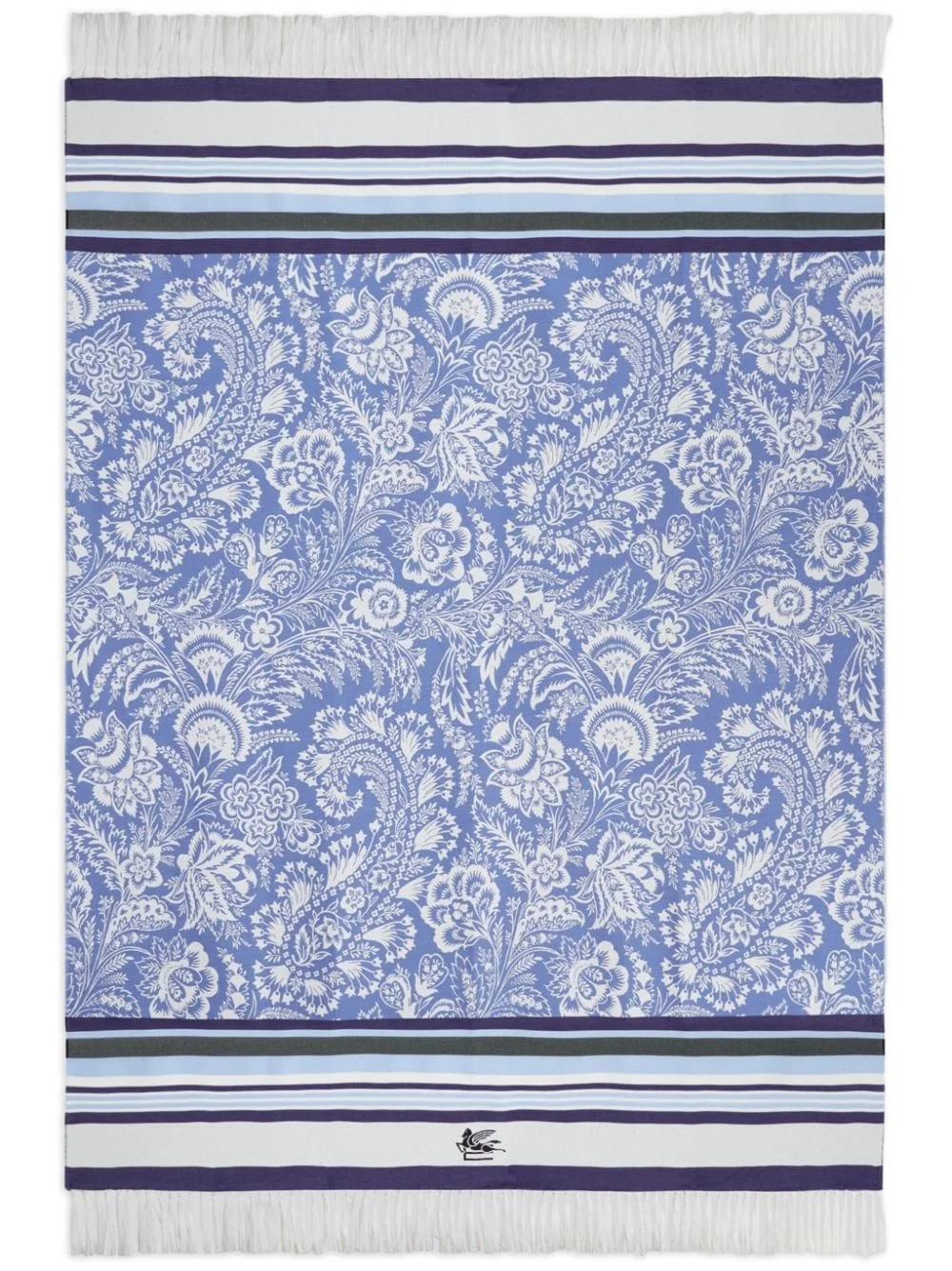 paisley-print beach towel Highlights - Blue/white - Cotton - Rectangle body - Paisley print - Signature pegaso motif - Fringed edge - When buying this unisex item, keep in mind that it is graded in standard men's sizing Made in Italy Composition Cotton 100% SIZE & FIT Measurement LENGTH 70.86 in(180 cm) WIDTH 53.14 in(135 cm) Washing instructions Read Manufacturer Guidelines
