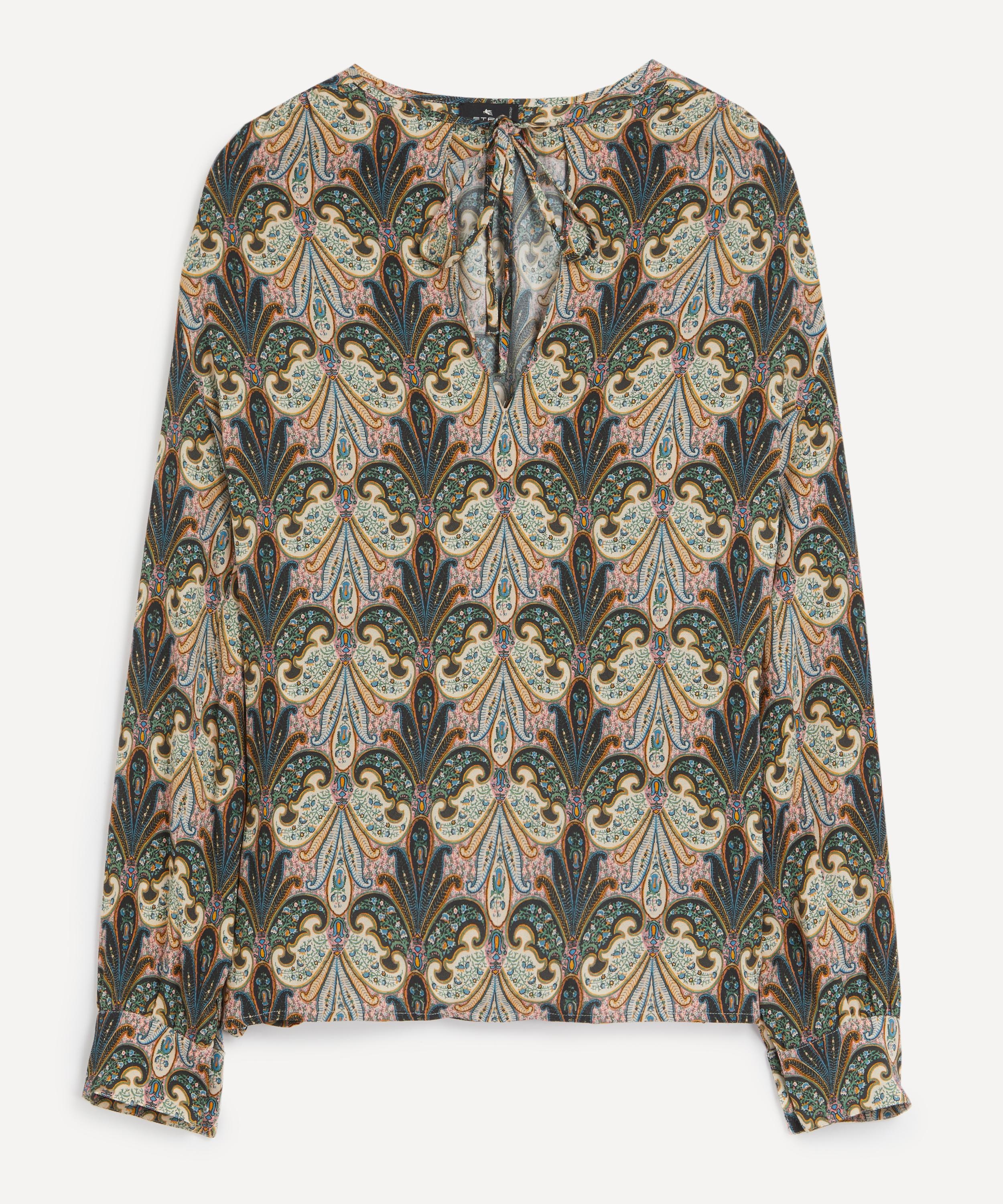 DETAILS Paisley-print blouse Loose fit Long sleeves Gathered shoulders Buttoned cuffs Keyhole neckline with tie fastenings Straight hem SIZE & FIT Model is 180cm/5.11"; Chest: 79cm; Waist: 62cm; Hip: 89cm and wears a size 8 COMPOSITION & CARE 97% Viscose; 3% Elastane Dry clean only