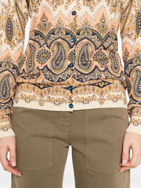 paisley-print cardigan Highlights - Beige - Paisley pattern - Button fastening - Long sleeves - Round neck - All-over print Made in Italy Composition Silk 55%, Cashmere 45% SIZE & FIT Model measurements Height 5 ft 9 in(1.75 m) Bust/Chest 32.67 in(83 cm) Hips 36.22 in(92 cm) Waist 24.8 in(63 cm) Washing instructions Dry Clean Only