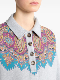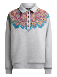 paisley-print cotton sweatshirt Highlights - Grey - Paisley print - Polo neck - Front button placket - Long sleeves Made in Italy Composition Cotton 100% Washing instructions Read Manufacturer Guidelines
