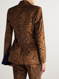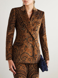 Don't overlook the ornate finish of Etro's blazer, it's a showcase of technical skill and Italian craftsmanship. Cut from cotton-blend corduroy printed with signature paisley swirls, it's sharply tailored for a double-breasted profile and fully lined for comfort. Discover the matching pants in our edit if you're looking to make a statement. Size & Fit - Fits true to size, take your normal size - Tailored for a slightly loose fit - Internal shoulder pads - Model is 180cm/ 5'11" and is wearing an IT 40 Model measurements: - Bust: 80cm/ 31.5" - Waist: 60cm/ 23.5" - Hip: 88cm/ 34.5" Details & Care - Tonal-brown and navy cotton-blend corduroy - Button fastenings through double-breasted front - 98% cotton, 2% elastane; lining: 52% viscose, 48% acetate - Fully lined - Dry clean