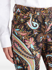 paisley-print flared trousers Highlights - Black/multicolour - Cotton blend - Stretch-design - Paisley print - Logo tag - High-waisted - Belt loops - Concealed fly and button fastening - Classic five pockets - Flared Made in Italy Composition Cotton 97%, Spandex/Elastane 3% SIZE & FIT Measurement FRONT RISE 10.98 in(27.9 cm) INSIDE LEG 34.01 in(86.4 cm) BACK RISE 12.99 in(33 cm) HIPS 35.98 in(91.4 cm) Hem Width 20 in(50.8 cm) WAIST 27.99 in(71.1 cm) Washing instructions Read Manufacturer Guidelines