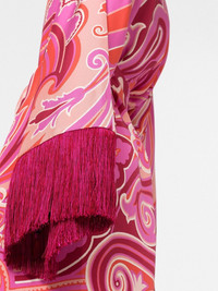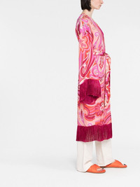 paisley-print fringed jacket ETRO spotlights its bohemian aesthetic jacket. Cut from sumptuous silk, the label’s recognisable paisley print is combined with swishy fringe detailing at the cuffs and hem. Made in Italy Composition Acetate 100%, Silk 100% SIZE & FIT Model measurements Height 5 ft 12 in(1.82 m) Bust/Chest 34.25 in(87 cm) Hips 37.79 in(96 cm) Waist 25.19 in(64 cm) Measurement SLEEVE LENGTH 22.44 in(57 cm) LENGTH 48.81 in(124 cm) FittingInformation This piece fits true to size. We recommend you get your regular size Cut for a loose fit. Comes with an adjustable belt for a flexible fit at the waist Made with a mid-weight non-stretch fabric Washing instructions Dry Clean Only