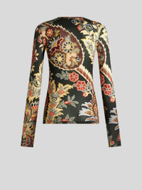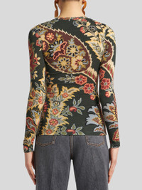 Stretch wool-blend jersey top with decorative floral Paisley print. PRODUCT DETAILS • 71% wool, 24% polyamide, 5% elastane