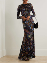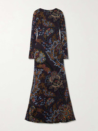 EDITORS'NOTES Etro's dress is printed with an ornate motif of vibrant flowers and the house's signature paisley swirls. It's cut from slinky jersey for a figure-skimming fit and has a demure boat neckline and turns to reveal a skin-baring open-back. SIZE & FIT Model measurements: - Fits true to size, take your normal size - Designed for a slim fit - Lightweight, stretchy fabric - Model is 180cm/ 5'11" and is wearing an IT 40 - Bust: 80cm/ 31.5" - Waist: 65cm/ 25.5" - Hip: 89cm/ 35" DETAILS & CARE - Multicolored jersey - Slips on - 100% viscose - Dry clean