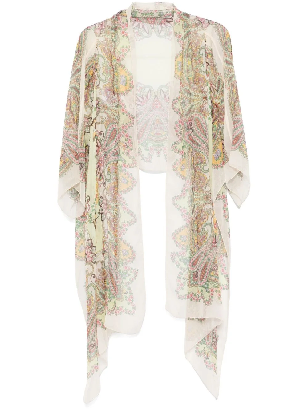 paisley-print silk cape Highlights - Light green - Front tie fastening - Three-quarter length sleeves - Semi-sheer construction Made in Italy Composition Silk 100% SIZE & FIT Model measurements Height 5 ft 11 in(1.8 m) Bust/Chest 32.67 in(83 cm) Hips 36.22 in(92 cm) Waist 24.4 in(62 cm) FittingInformation Designed to be unstructured, offering a loose fit throughout The tie fastening gives an adaptable and personalised fit Made from a lightweight non-stretch fabric