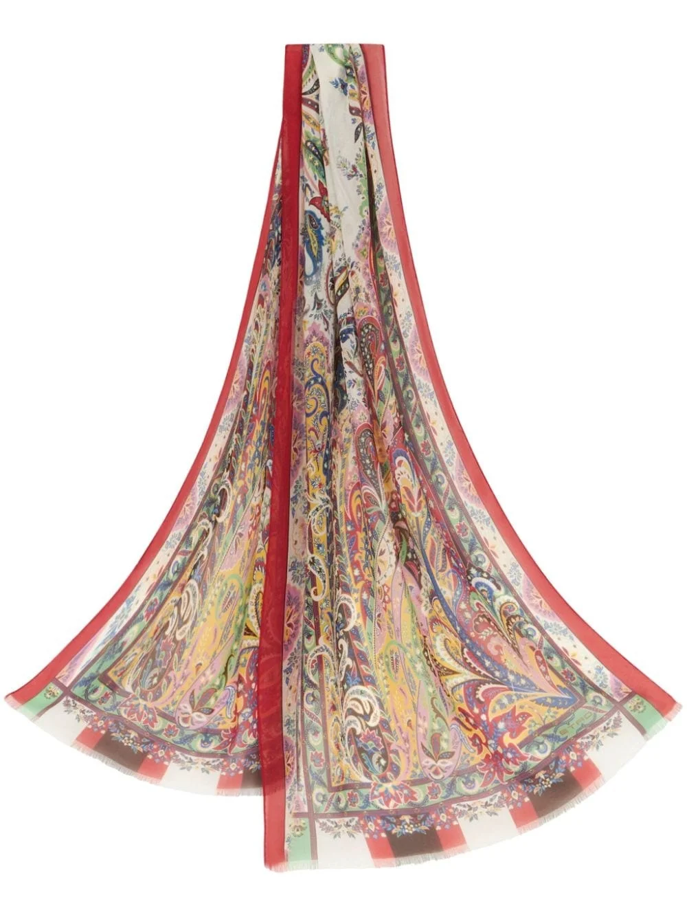paisley-print silk scarf Highlights - Multicolour - Silk - Lightweight construction - Paisley print - Logo print at the hem - Frayed edge Made in Italy Composition Silk 100% SIZE & FIT Measurement LENGTH 55.11 in(140 cm) WIDTH 17.71 in(45 cm) Washing instructions Read Manufacturer Guidelines