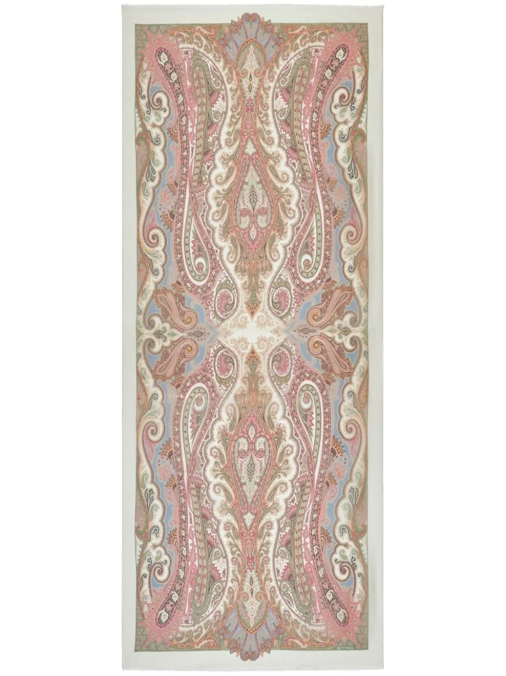paisley-print silk scarf Highlights - Beige/multicolour - Silk - Lightweight construction - Paisley print - Logo-print edge - Rectangle shape - Fringed edge Made in Italy Composition Silk 100% SIZE & FIT Measurement LENGTH 66.92 in(170 cm) WIDTH 27.55 in(70 cm)