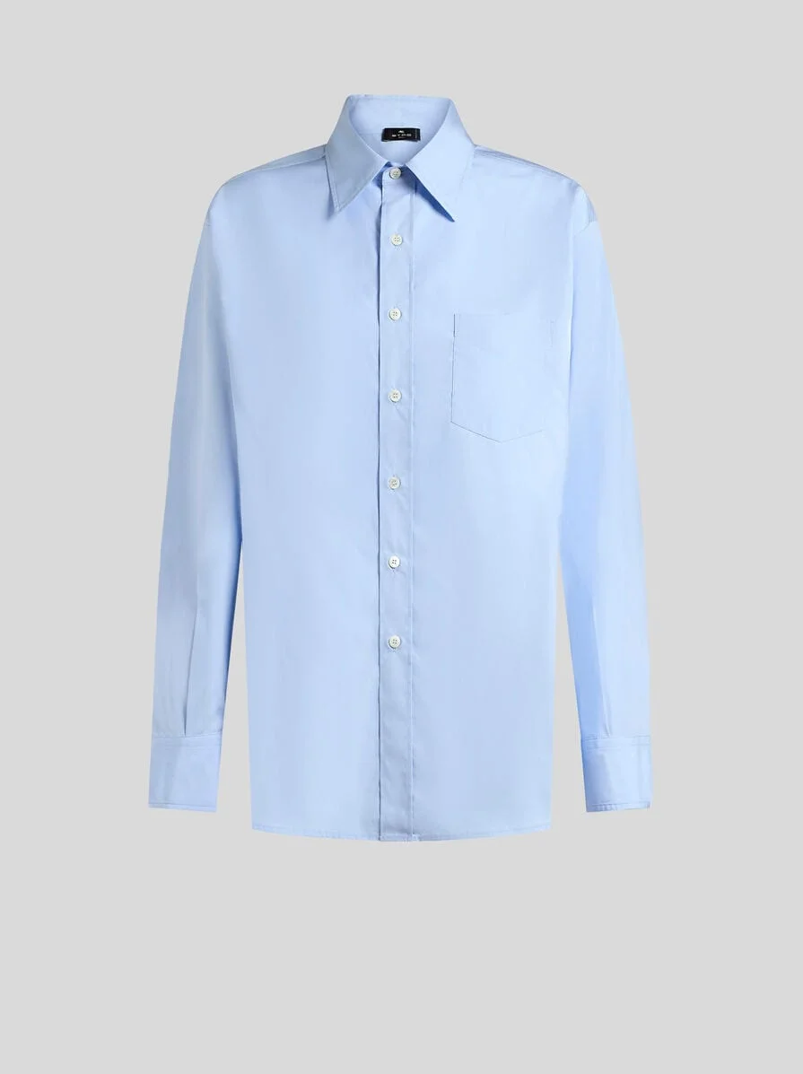 Straight-cut shirt in pure cotton poplin. The back part – made from pure silk twill – features a silk scarf-inspired print. • Oversized fit • Classic collar • Breast patch pocket • Long sleeves • Working cuffs • Branded-button closure • Made in Italy • The model is 5' 9½" (177 cm) tall and wears a size 40 PRODUCT DETAILS • 100% cotton • Back: 100% silk