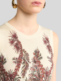 Sleeveless silk- and cashmere-blend top. This model stands out for its placed, floral Paisley print. • Regular fit • Crew-neck • Sleeveless • Made in Italy • The model is 5' 9½" (177 cm) tall and wears a size 40 PRODUCT DETAILS • 55% silk, 45% cashmere