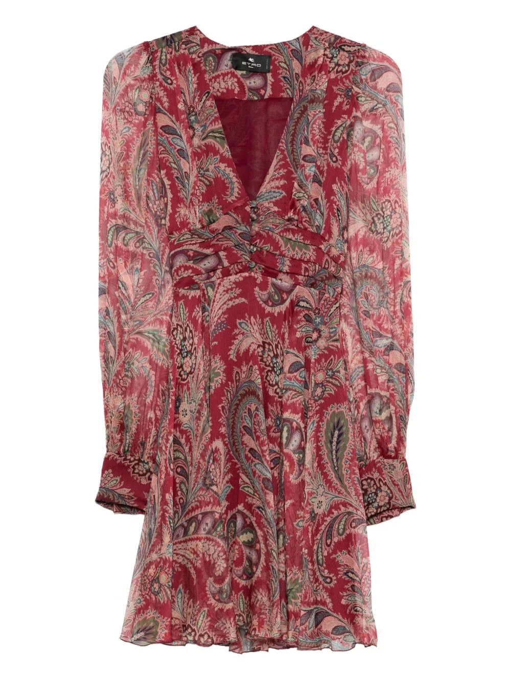 paisley-print v-neck mini dress Highlights - Dark red - Paisley print - V-neck - Long sleeves - Button fastening Made in Italy Composition Lining: Polyester 100% Outer: Silk 100% SIZE & FIT Model measurements Height 5 ft 9 in(1.75 m) Bust/Chest 34.64 in(88 cm) Hips 36.61 in(93 cm) Waist 26.37 in(67 cm) Washing instructions Dry Clean Only