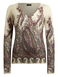 paisley-print v-neck sweater Highlights - White - Paisley print - V-neck - Long sleeves Made in Italy Composition Silk 55%, Cashmere 45% Washing instructions Dry Clean Only
