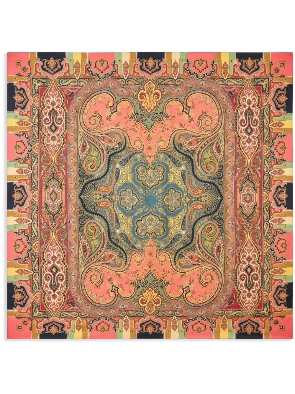 paisley-print square scarf Highlights - Pink/multicolour - Silk/wool - Twill weave - Paisley print - Logo print at the hem - Solid border - Square shape Made in Italy Composition Wool 70%, Silk 30% SIZE & FIT Measurement WIDTH 53.54 in(136 cm) LENGTH 53.54 in(136 cm)