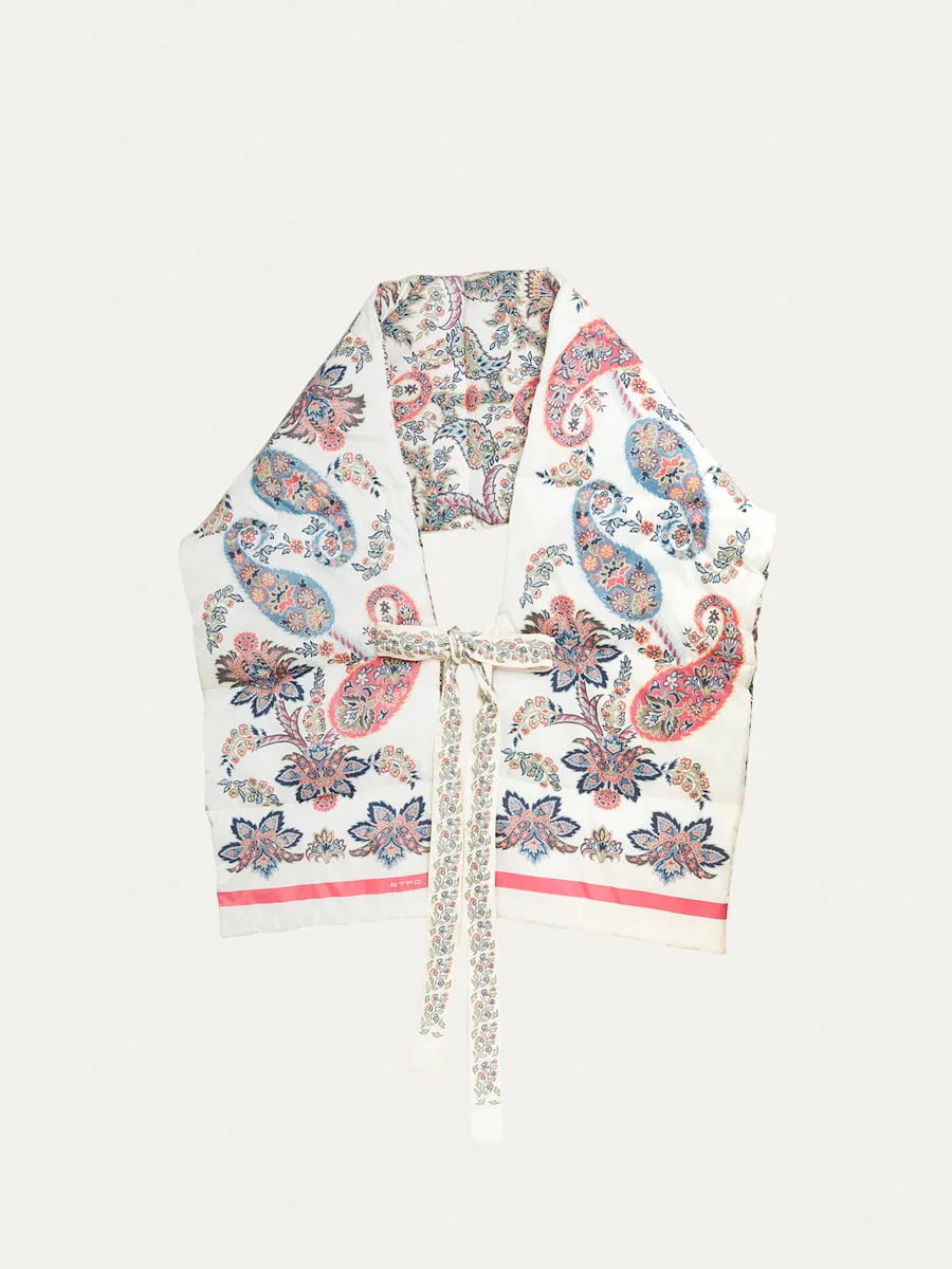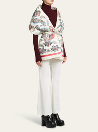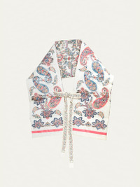 Etro quilted paisley scarf in wool, cashmere, and silk Approx. 66.9"L x 27.5"W Ribbon selftie closure May be styled in multiple ways Professional cleaning recommended Made in Italy