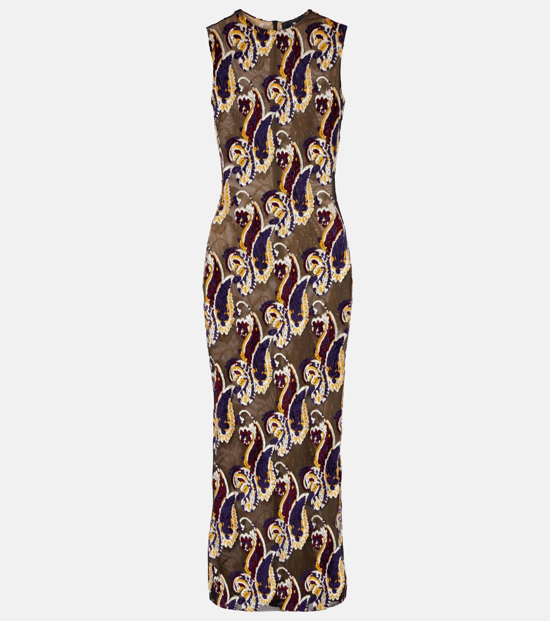 Paisley prints are so synonymous with Etro that they've become a house signature. This motif is featured on this semi-sheer midi dress, a sleeveless style with a form-fitting silhouette. Product Details - Material: 93% viscose, 4% polyamide, 3% elastane - Care instructions: dry clean - Made in Italy - Designer color name: Black - Item color: multicolor - Lining: 84% polyamide, 16% elastane - Closure: concealed zipped back - Item number: P01091653 Size & Fit - True to size - Fitted - Stretchy fabric - Height of model is 174cm-68.5" and wears a size IT 40