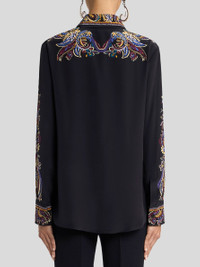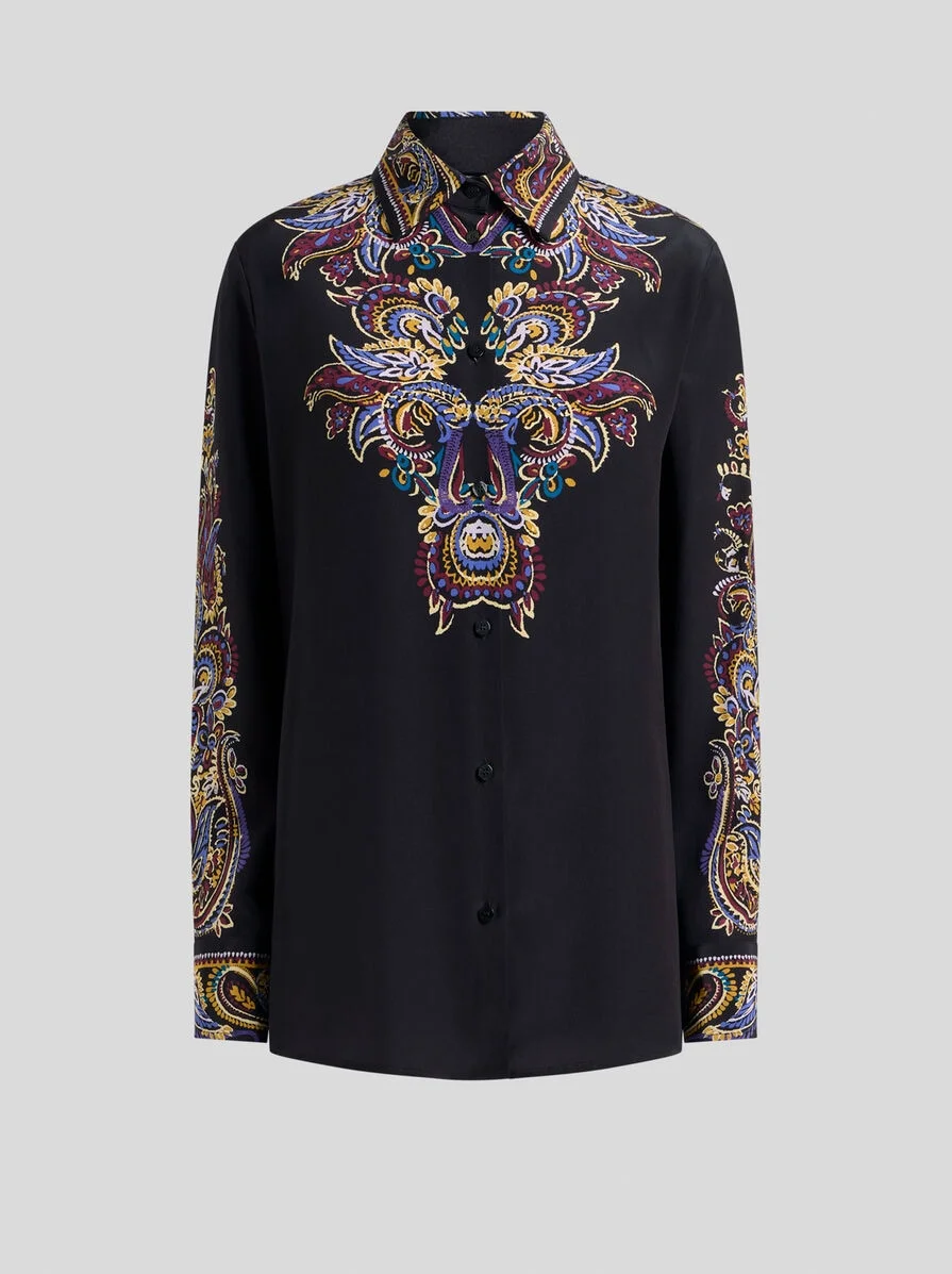 SILK SHIRT WITH PLACED PAISLEY FOLIAGE PRINT