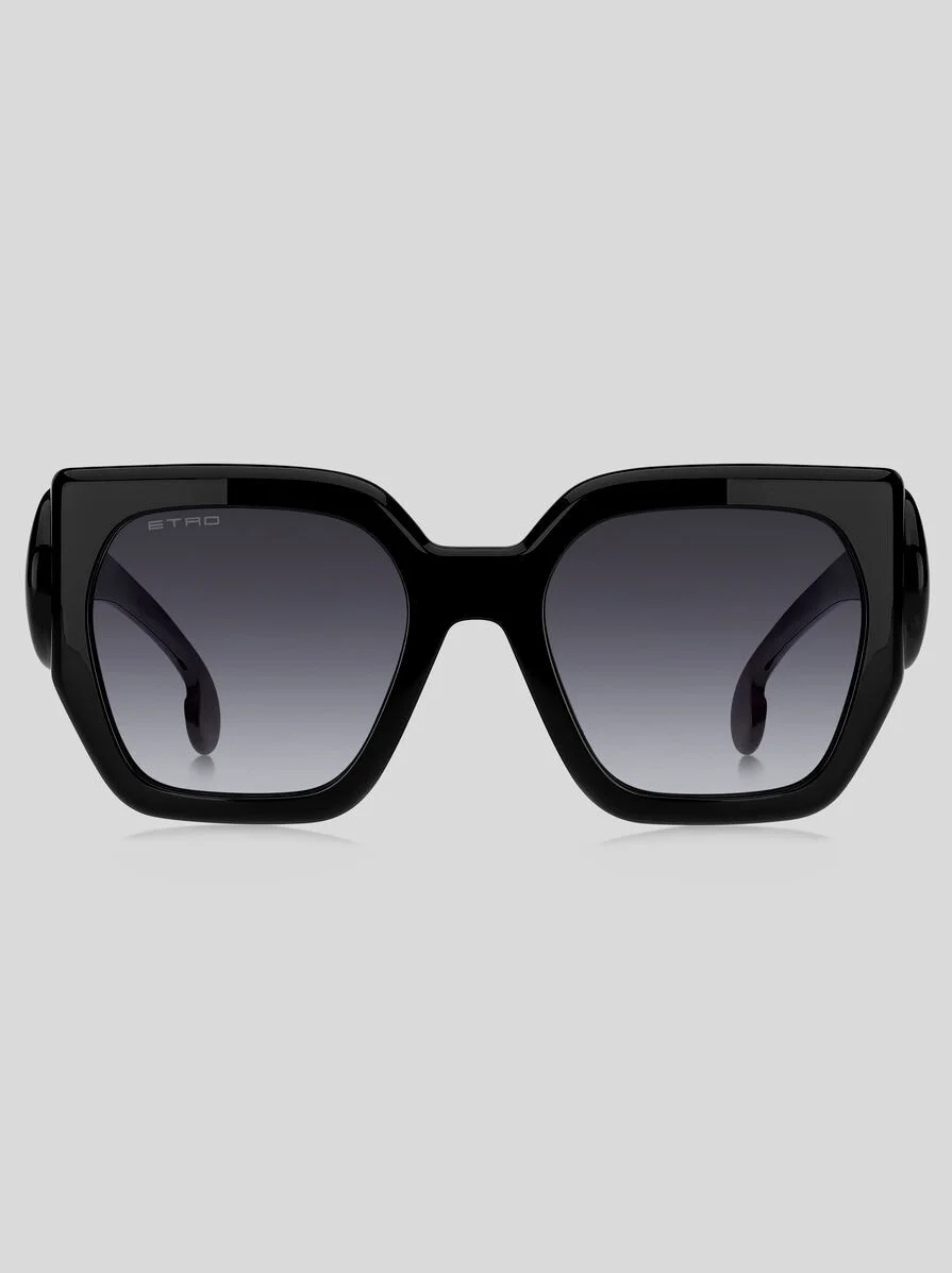 The "Etropaisley" eyewear line breathes new life into the timeless pattern. These sunglasses embody playful decadence with their geometric angles and strong acetate shapes, offered in a sophisticated colour palette. Seemingly simple from the front, this frame stands out with its unique temples – designed to resemble the iconic Paisley shape. The brand's minimalist logos on each side and the tinted lenses add a subtle yet stylish detail. • Lenses with UVA and UVB protection • Fitting: International • Lenses: 1.91 inches (48,6 mm), Bridge: 0.83 inches (21 mm), Temples: 5.71 inches (145 mm) • Made in China PRODUCT DETAILS • Frame: 100% acetate