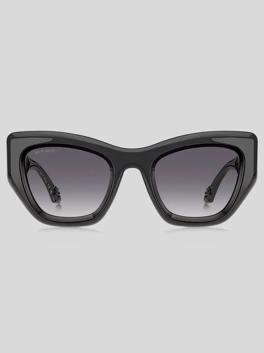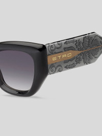 ETRO's "Paisley" eyewear collection embraces one of the Maison's most distinctive style codes: the eponymous Paisley pattern. Renowned for its exquisite fabrics, the house has reimagined this timeless motif in a myriad of captivating forms and chromatic expressions; these sunglasses, designed to be lightweight and comfortable to wear, reveal the motif as a sophisticated engraving on the internal part of transparent coloured temples. Precious metal wirecores, iconic end tips and discreet ETRO branding lend a signature finishing touch. PRODUCT DETAILS • Frame: 100% polyamide • Lenses with UVA and UVB protection • Fit: International • Lenses: 1.68 inches, bridge: 0.94 inches, temples: 5.70 inches (Lenses: 42,6 mm, bridge: 24 mm, temples: 145 mm) • Made in Italy