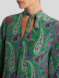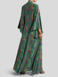 Relaxed-fit long dress in pure silk crepe de chine. This piece features wide sleeves and stands out for its multicoloured, all-over macro Paisley motif enhanced by floral elements. Completing the design is the fine silk scarf that ties over the V-neck. • Regular fit • V-neck with silk scarf • Wide sleeves • Made in Italy • The model is 5' 9½" (176 cm) tall and wears a size 40 PRODUCT DETAILS • 100% silk
