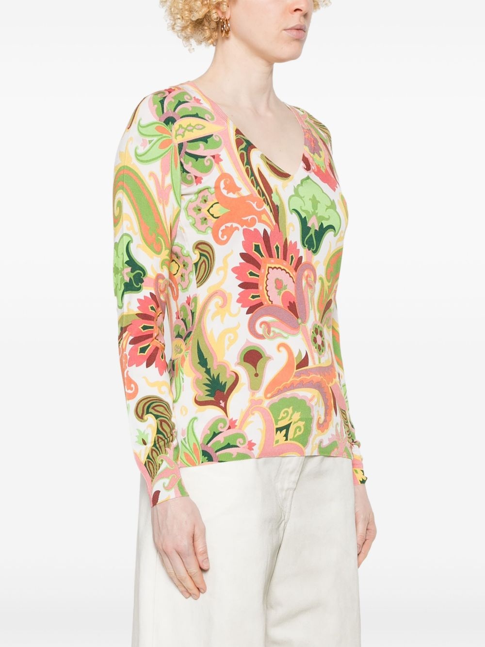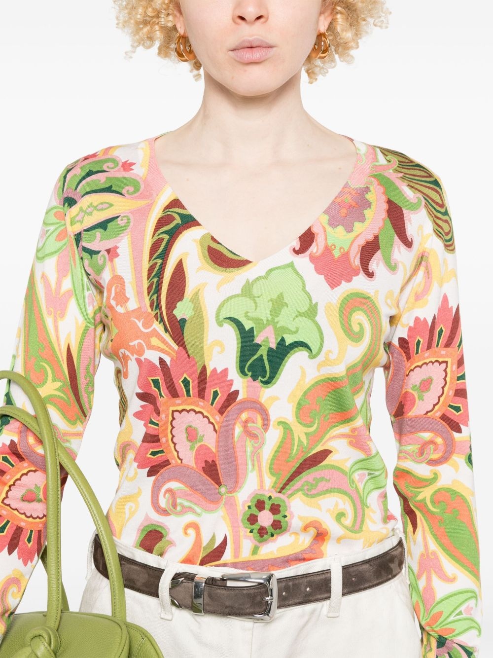 paisley top Highlights - Green - V-neck - Long sleeves - Ribbed cuffs and hem Made in Italy Composition Silk 85%, Polyamide 9%, Elastane 6% SIZE & FIT Model measurements Height 5 ft 9 in(1.75 m) Bust/Chest 33.85 in(86 cm) Hips 36.22 in(92 cm) Waist 25.98 in(66 cm) FittingInformation Designed for a close fit throughout Made from a midweight stretch fabric, this piece offers elasticity and flexibility when worn