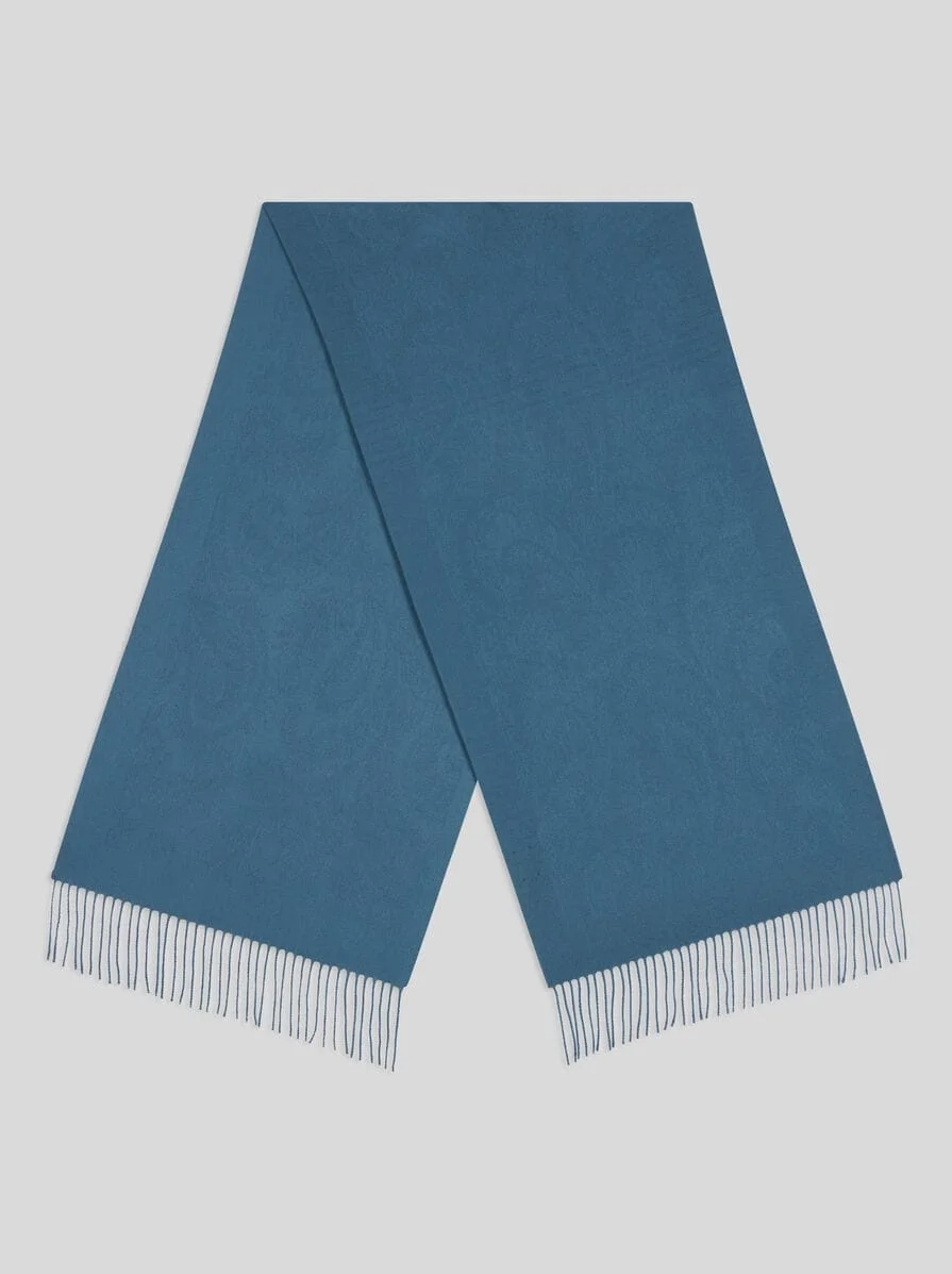 Pure wool jacquard scarf with all-over Paisley motif. Complete with fringing on the short sides and a label with the Pegaso logo and ETRO lettering. • Size: 20.5 x 70.9 inches (52 x 180 cm) • Made in Italy PRODUCT DETAILS • 100% wool