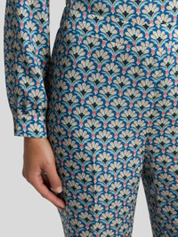 Slightly cropped bootcut trousers in fluid twill fabric with micro palm-tree motif. This model features a partially elasticated waist and is finished with pressed creases on the front and back. • Regular fit • High waist elasticated at the back • Side zip closure • Made in Italy • The model is 5' 9½" (176 cm) tall and wears a size 40 PRODUCT DETAILS • 100% polyester