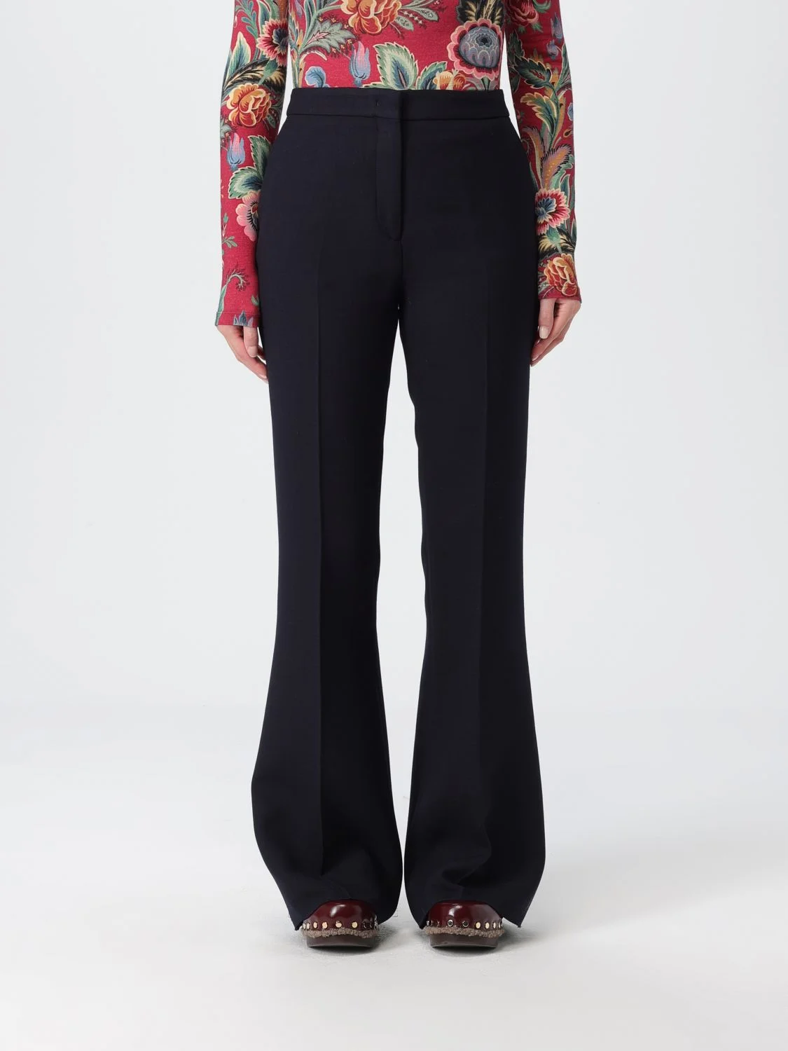 DESCRIPTION - Style: Classic - Pockets: Back slit pocket - Bottom: With straight hemline - Closure: With button and zip - Waist: High waist - Materials: Wool blend - Pattern: Plain-colored DETAILS AND CARE Composition 52%po-44%wo-4%el SIZE AND FIT Sizes not available Size and fit Slim fit Designer code: WREA001199TUBN6 B3895 Giglio Code: H30487 Designer: Etro Collection: Etro Woman Category: Clothing Etro