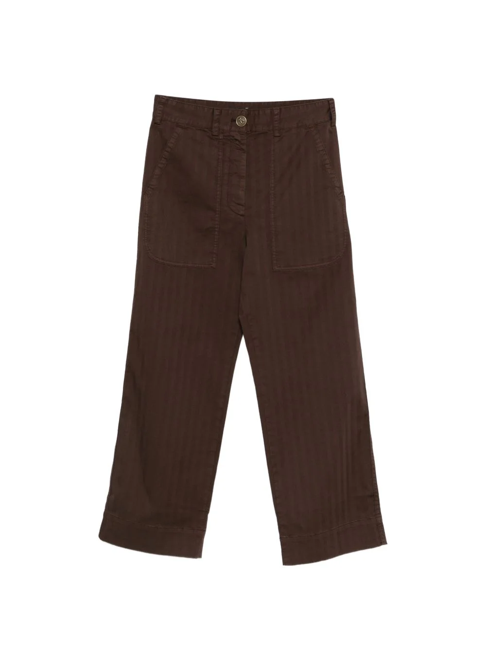 patch-pocket herringbone trousers Highlights - Brown - Cotton - Herringbone weave - Patch pockets - Button fastening - Straight leg Made in Italy Composition Cotton 98%, Spandex/Elastane 2% Washing instructions Machine Wash
