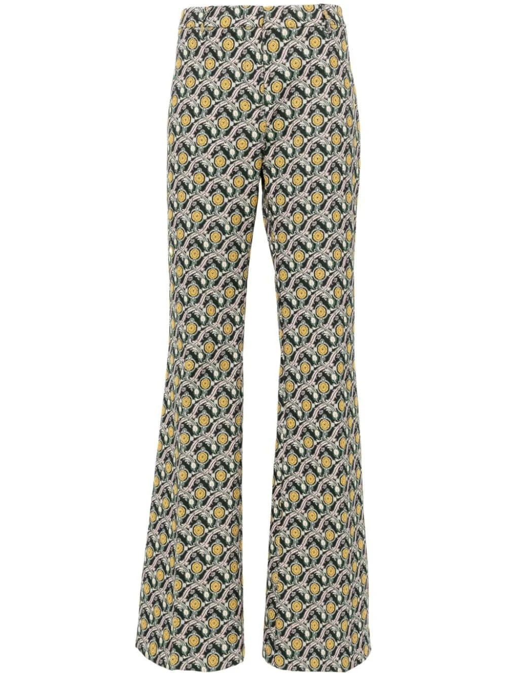 patterned-jacquard flared trousers Highlights - Multicolour - Cotton blend - Patterned jacquard - Tailored design - Flared - Mid-rise - Concealed front button, hook and zip fastening - Belt loops - Two rear welt pockets - Pressed crease - Straight hem Made in Italy Composition Cotton 59%, Polyester 20%, Nylon 19%, Elastane 2% SIZE & FIT Model measurements Height 5 ft 10 in(1.78 m) Bust/Chest 32.67 in(83 cm) Hips 35.43 in(90 cm) Waist 23.22 in(59 cm) FittingInformation Designed with a flared hem, these trousers allow for a close fit at the waist with a slim fit over the leg and widening towards the hem Made from a midweight stretch fabric, this piece offers elasticity and flexibility when worn This piece fits true to size – take your usual size