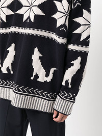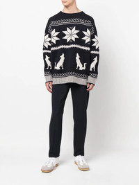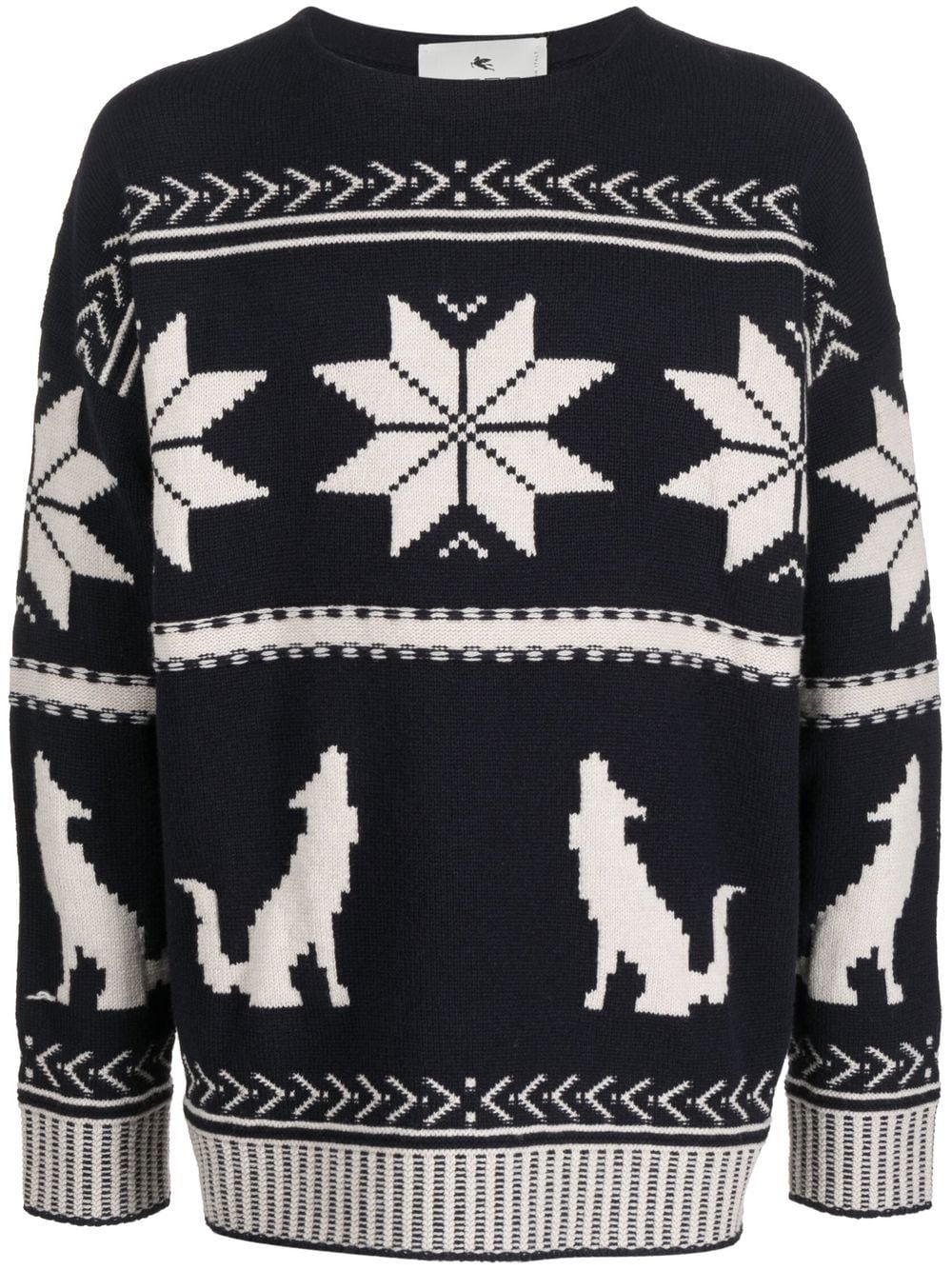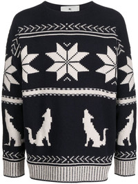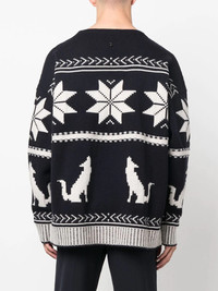 patterned-jacquard knitted jumper Highlights - Navy blue - Blue - Virgin wool - Chunky knit - Patterned jacquard - Crew neck - Long sleeves - Straight hem Made in Italy Composition Virgin Wool 100% SIZE & FIT Model measurements Height 6 ft 1 in(1.86 m) Bust/Chest 36.61 in(93 cm) Hips 37 in(94 cm) Waist 28.74 in(73 cm) FittingInformation This piece fits true to size. We recommend you get your regular size Cut for a relaxed fit Made with a mid-weight fabric Washing instructions Hand Wash