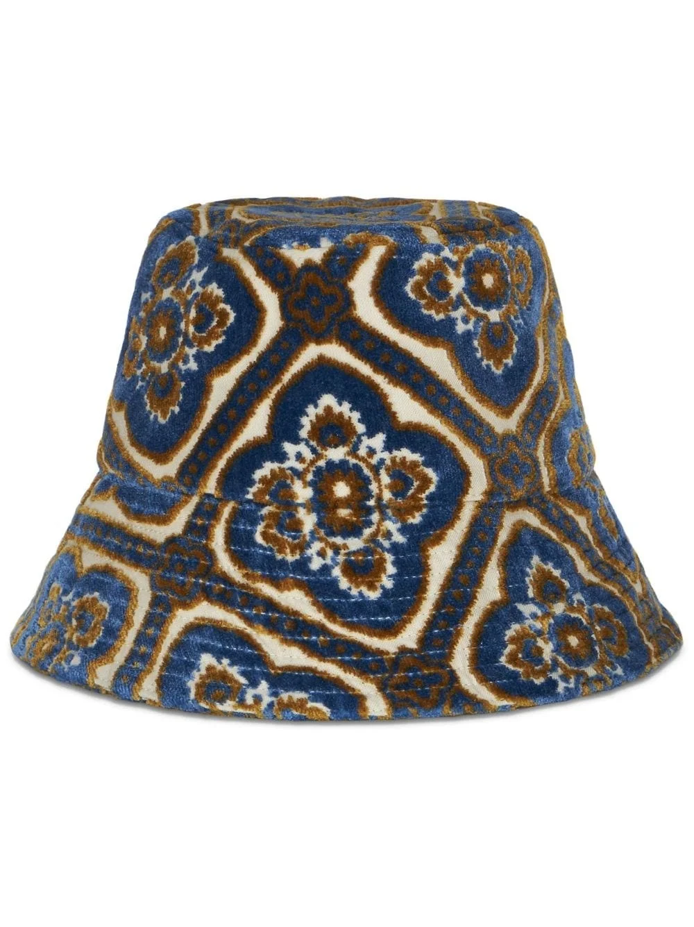 patterned-jacquard terry-cloth bucket hat Highlights - Navy blue/multicolour - Terry-cloth effect - Patterned jacquard - Dropped narrow brim - Pull-on style Made in Italy Composition Outer: Viscose 53%, Cotton 47% Lining: Viscose 52%, Acetate 48% SIZE & FIT Measurement BRIM 2.95 in(7.5 cm) CIRCUMFERENCE 22.04 in(56 cm) Washing instructions Read Manufacturer Guidelines
