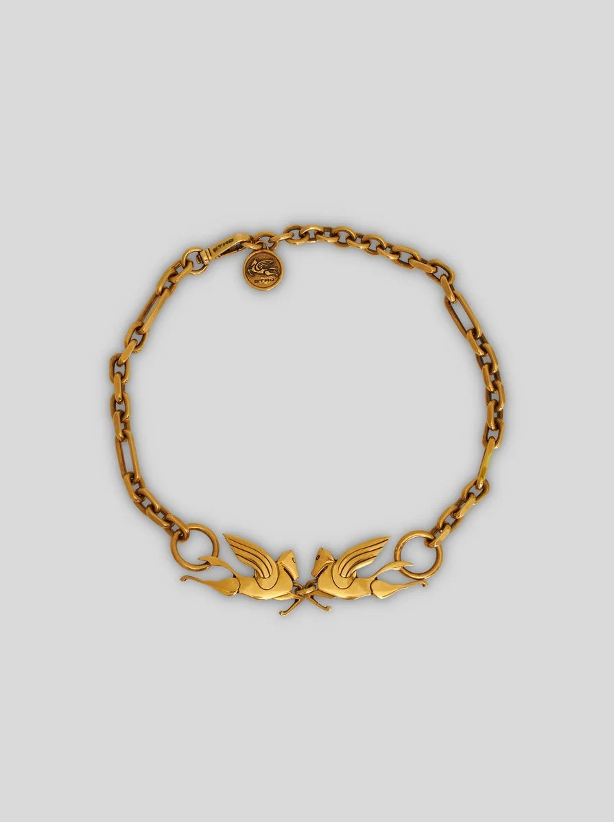 Brass chain choker necklace with two Pegasos and logo-branded charm. PRODUCT DETAILS • 100% brass • Clasp closure • Made in Italy