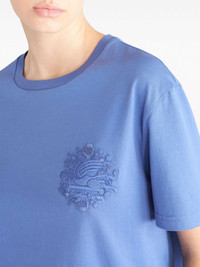 Pegaso-embroidered cotton T-shirt Highlights - Blue - Cotton - Jersey texture - Signature pegaso motif - Floral embroidery - Crew neck - Short sleeves - Straight hem Made in Italy Composition Cotton 100%, Polyester 100% SIZE & FIT FittingInformation Designed to be unstructured, offering a loose fit throughout Made from a midweight non-stretch fabric, this piece offers minimal elasticity when worn This piece fits true to size – take your usual size Washing instructions Read Manufacturer Guidelines