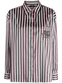 Pegaso-embroidered striped shirt Highlights - Black/rose pink - Cotton-silk blend - Satin finish - Vertical stripe pattern - Signature pegaso motif - Classic collar - Front button fastening - Long sleeves - Buttoned cuffs - Chest patch pocket - Straight hem Made in Italy Composition Cotton 70%, Viscose 27%, Silk 3% SIZE & FIT Model measurements Height 5 ft 10 in(1.77 m) Bust/Chest 29.92 in(76 cm) Hips 34.25 in(87 cm) Waist 23.62 in(60 cm) Washing instructions Dry Clean Only