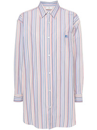 Pegaso-embroidered striped shirt ETRO's Pegaso motif symbolises 'the fountain of inspiration and creativity’ embedded in the brand's DNA. Embroidered at the chest of this long-sleeve striped shirt, the emblem adds a recognisable touch to the design. Highlights - Multicolour - Cotton - Poplin texture - Vertical stripe print - Signature pegaso motif - Embroidered logo at the chest - Classic collar - Front button fastening - Drop shoulder - Long sleeves - Buttoned cuffs - Chest patch pocket - Curved hem Made In Italy Composition Cotton 100% SIZE & FIT Model measurements Height 5 ft 10 in(1.79 m) Bust/Chest 32.67 in(83 cm) Hips 34.25 in(87 cm) Waist 24.4 in(62 cm) FittingInformation Designed to be unstructured, offering a loose fit throughout Made from a midweight non-stretch fabric This piece fits true to size – take your usual size Washing instructions Machine Wash