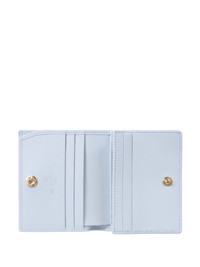 Pegaso-motif leather wallet Highlights - Pastel blue - Press-stud fastening - Internal card slots - Internal note compartments - Debossed internal logo Made in Italy Composition Outer: Calf Leather 100%, Nylon 100% SIZE & FIT Measurement HEIGHT 3.34 in(8.5 cm) WIDTH 4.33 in(11 cm)