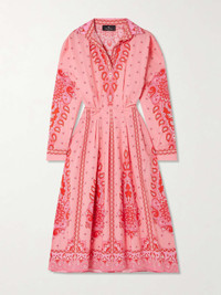 Etro's shirt dress has such a sweet, retro feel. Made from crisp cotton-blend poplin, it's printed with flowers and the label's signature paisley swirls in a pretty red, tonal-pink and white colorway. It nips in at the waist and is pleated through the skirt to give it volume and movement. Size & Fit - Fits true to size, take your normal size - Designed for a loose fit - Mid-weight, non-stretchy fabric - Model is 180cm/ 5'11" and is wearing an IT 40 Model measurements: - Bust: 76cm/ 30" - Waist: 64cm/ 25" - Hip: 86cm/ 34" Details & Care - Tonal-pink, red and white cotton-blend poplin - Concealed zip fastening along side - 97% cotton, 3% elastane - Dry clean