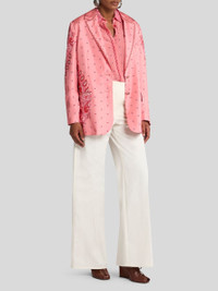 Long, relaxed-fit jacket in silk twill. This garment features a refined floral print all over and a placed medallion motif at the sides, on the sleeves and on the back, while the lapels sport micro-patterned edging. • Relaxed fit • Single-breasted closure with Pegaso buttons • Cuffs with Pegaso buttons • Side slip pockets with flap • Welt breast pocket • Made in Italy • The model is 5' 9½" (177 cm) tall and wears a size 40 PRODUCT DETAILS • 100% silk • Lining: 52% viscose, 48% acetate