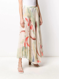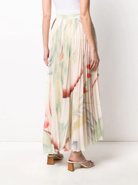 pleated maxi skirt Nude pleated maxi skirt from ETRO featuring a foliage print, a pleated design, a high rise, a flared style, a side button fastening, an asymmetric hem and a mid-length. Made in Italy Composition Lining: Silk 100% Outer: Polyester 100% SIZE & FIT Model measurements Height 5 ft 9 in(1.74 m) Bust/Chest 32.28 in(82 cm) Hips 35.82 in(91 cm) Waist 24.01 in(61 cm) FittingInformation This piece fits true to size. We recommend you get your regular size Designed to be fitted at the waist, loose over the leg Made with a mid-weight non-stretch fabric Washing instructions Dry Clean Only