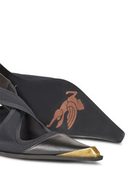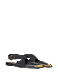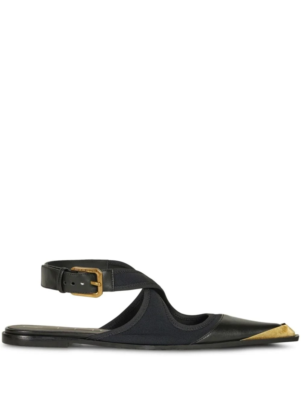 pointed slingback ballerina shoes Highlights - Black - Stretch-design - Leather trim - Crossover strap detail - Buckle-fastening slingback strap - Metal toecap - Pointed toe - Gold-tone hardware - Branded leather insole - Flat leather sole Imported Composition Outer: Calf Leather 100%, Brass 100%, Polyester 48%, Nylon 42%, Elastane 10% Lining: Calf Leather 100% Sole: Calf Leather 100%