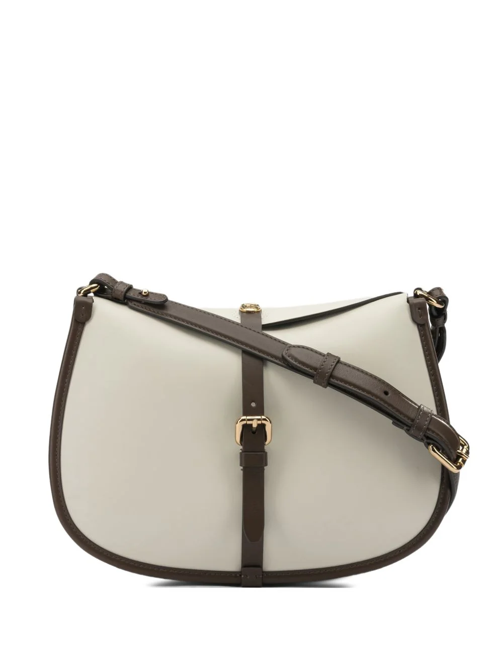 Pony buckle leather cross body bag Highlights - White - Brown trims - Adjustable strap - Buckle - Gold-tone hardware - Top handle Made in Italy Composition Outer: Calf Leather 100%