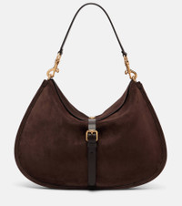 The Pony Small tote bag showcases Etro's artisanal heritage and refined craftsmanship. Crafted from supple suede, this style comes in a curved silhouette accented by gold-toned hardware and is finished with a front buckle strap. Product Details - Material: calf leather (suede) - Lining: cow leather - Made in Italy - Designer color name: Marrone Scuro - Item color: brown - Detachable shoulder strap - Internal details: single compartment, internal slot pocket - Closure: magnetic fastening, buckle fastening - Item number: P01076449 Size & Fit - Height 31cm-12" - Width 46cm-18" - Depth 4cm-1.5" - Length of handles 52cm-20.5"