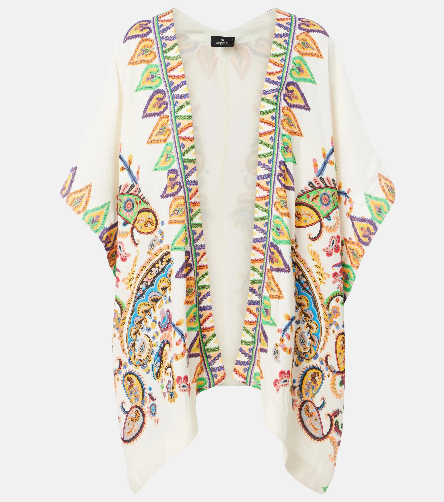 Gerolamo and Roberta Etro's love for antique prints and patterns remains a cornerstone of the Italian brand today. Made from fluid viscose, this beach cover-up comes in an open-front silhouette and is complete with an array of vibrant motifs. Product Details - Material: 100% viscose - Care instructions: dry clean - Made in Italy - Color: white - Designer color name: X0800 - Material II: 100% polyester - Closure: open front - Item number: P01122192 Size & Fit - True to size - One size: perfect fit for sizes XS-XL - Designed for a loose fit - Non-stretchy fabric - Falls below the hip - The model seen in the picture is 178cm-5'10" and wearing a size - - One size
