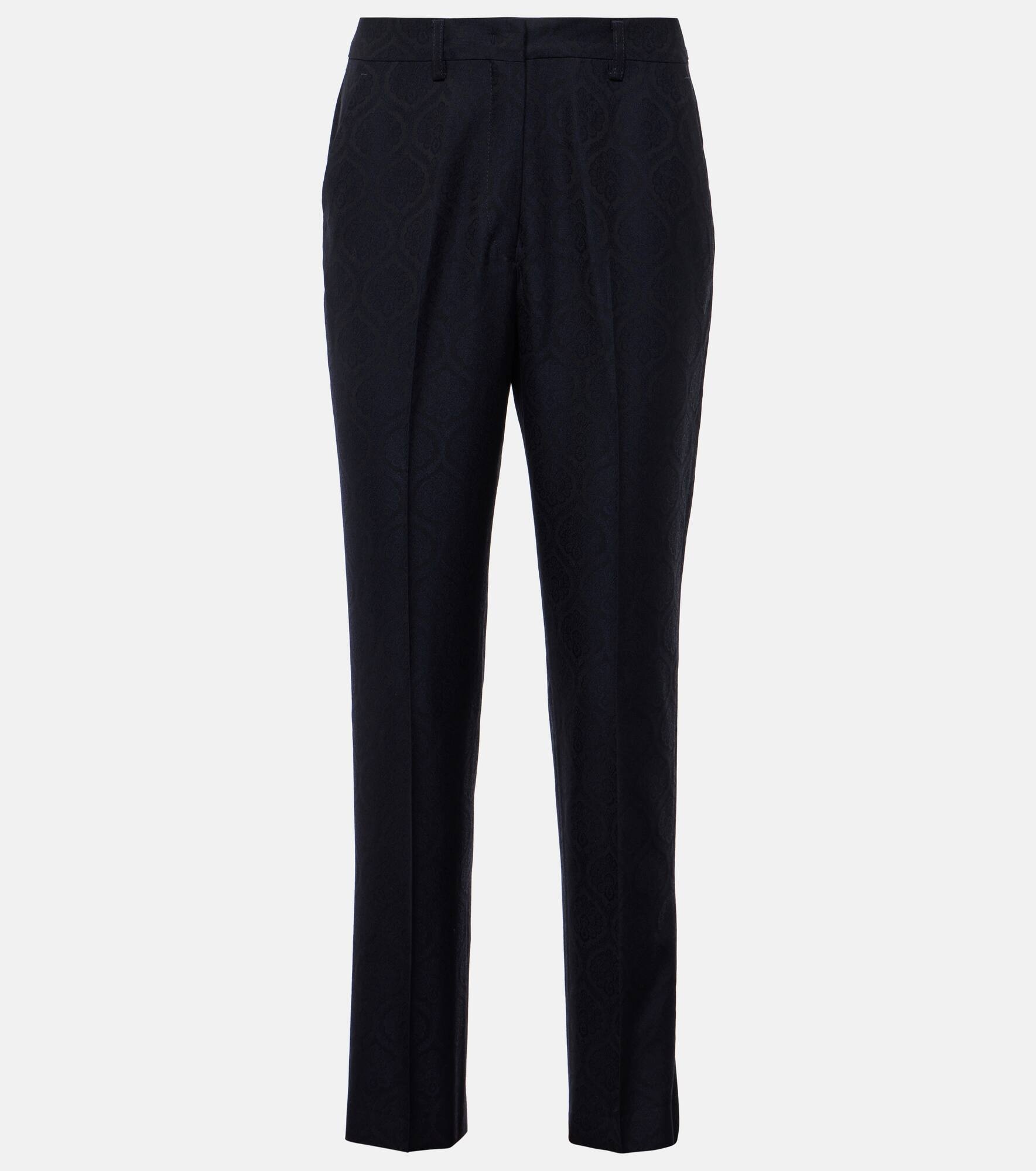 Printed cotton-blend jacquard slim pants