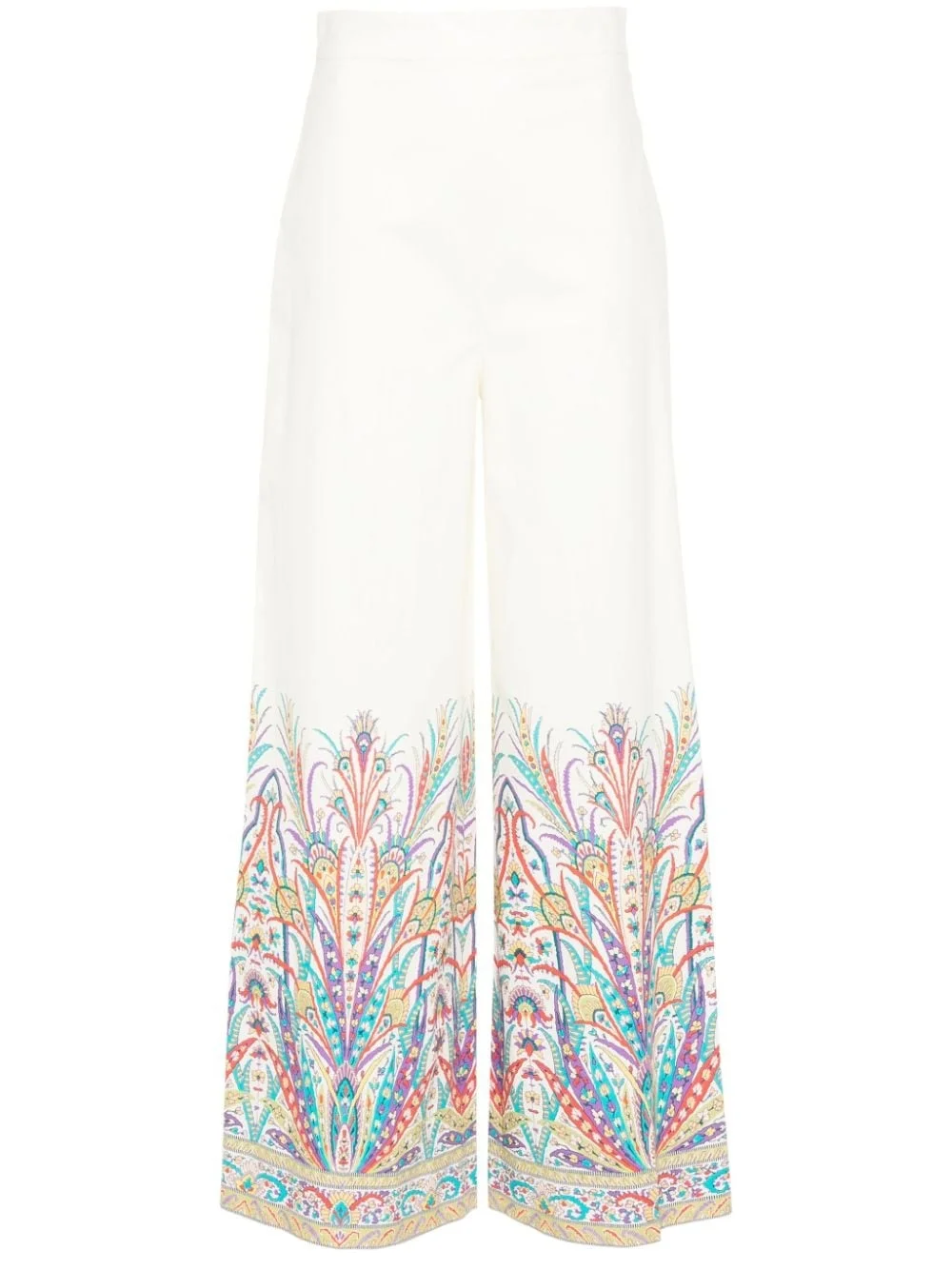 botanical-print trousers Highlights - White/multicolour - Cotton blend - Stretch-design - Botanical print - Pressed crease - Wide leg - Concealed rear hook and zip fastening Made in Italy Composition Cotton 97%, Elastane 3% SIZE & FIT Model measurements Height 5 ft 11 in(1.8 m) Bust/Chest 32.67 in(83 cm) Hips 36.22 in(92 cm) Waist 24.4 in(62 cm) FittingInformation Designed with a wide-leg cut, these trousers allow for a close fit at the waist and offer a loose and roomy fit over the leg Made from a midweight stretch fabric, this piece offers elasticity and flexibility when worn This piece fits true to size – take your usual size