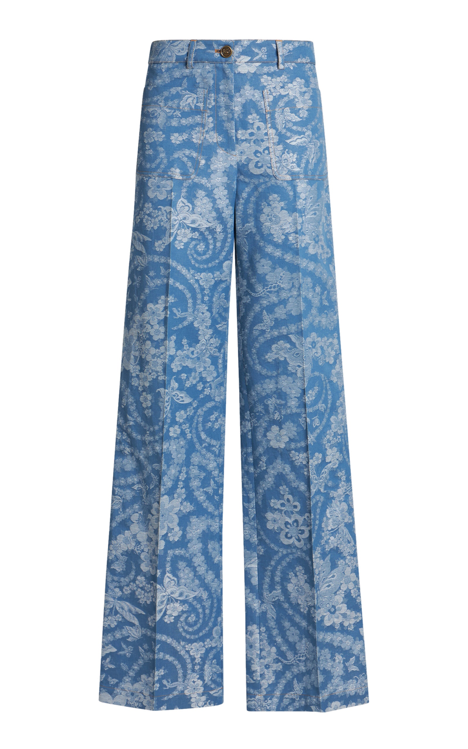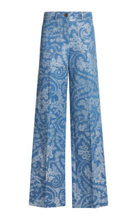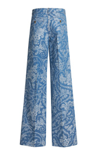 Printed Cotton Wide-Leg Pants blue