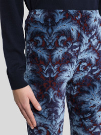Trousers with snug fit at the sides and flared hem. This model is made from stretch jersey with a chenille jacquard motif inspired by the natural world. • Slim fit • High waist • Made in Italy • The model is 5' 9½" (177 cm) tall and wears a size 40 PRODUCT DETAILS • 96% viscose, 4% elastane