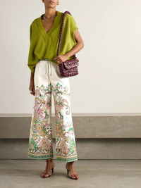 Intricate paisley patterns are as synonymous with Etro as any logo. These jeans are made from denim in a wide-leg shape and have a high waist threaded with a slim, self-tie belt. Accessorize with suede boots and a stack of bracelets to embrace the brand's bohemian roots. Size & Fit - Fits true to size, take your normal size - High-rise, designed for a wide-leg fit - Mid-weight, non-stretchy denim - Model is 180cm/ 5'11" and is wearing a size 26 Model measurements: - Bust: 85cm/ 33.5" - Waist: 62cm/ 24.5" - Hip: 88cm/ 34.5" Details & Care - Multicolored denim - Button and concealed zip fastening at front - 97% cotton, 3% elastane - Machine wash