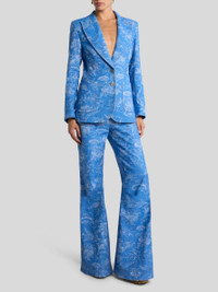 FLARED COTTON AND LINEN JACQUARD DENIM JEANS WITH FLORAL MOTIF